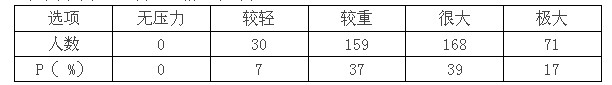 從表 1知,中學(xué)教師有 93%認(rèn)為自己有壓力有 56%認(rèn)為自己的壓力是很大或極大,說(shuō)明中學(xué)教師的壓力是非常嚴(yán)重的。