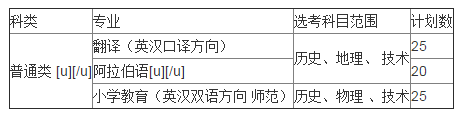 熱愛祖國,遵紀(jì)守法,品德優(yōu)良,身心健康,綜合素質(zhì)較高,具有一定特長和專業(yè)潛質(zhì)的,有志于從事翻譯(英漢口譯方向)、阿拉伯語、小學(xué)教育(英漢雙語方向,師范)專業(yè)相關(guān)工作的高中畢業(yè)生。