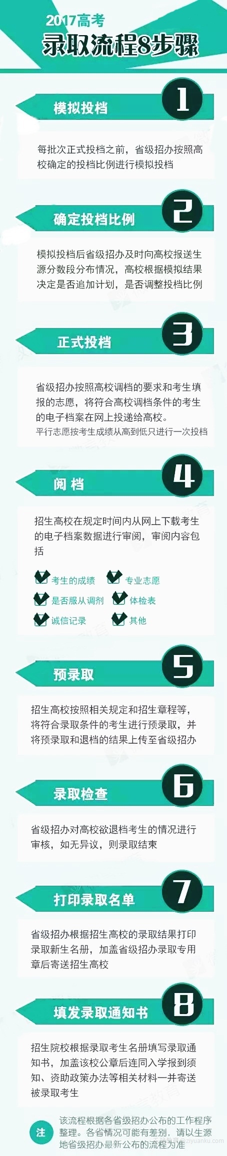 2017年高考填報(bào)志愿正在進(jìn)行,志愿填報(bào)后即將進(jìn)入錄取環(huán)節(jié)。錄取流程都有哪些?怎樣查詢錄取結(jié)果?錄取通知書何時(shí)能收到?中華資源庫(kù)小編整理了高考錄取的8個(gè)步驟和12個(gè)常見(jiàn)問(wèn)題,考生和家長(zhǎng)看過(guò)來(lái)。