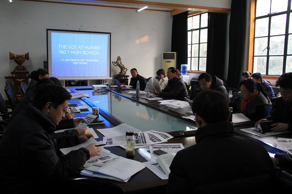 歡送會(huì)上,兩位老師首先向與會(huì)的領(lǐng)導(dǎo)介紹了擬在我校開(kāi)設(shè)的VCE課程班工作設(shè)想,包括學(xué)習(xí)科目設(shè)置、教師培訓(xùn)與人員交流、學(xué)業(yè)成績(jī)認(rèn)定辦法等等方面,引起了與會(huì)人員的濃厚興趣。