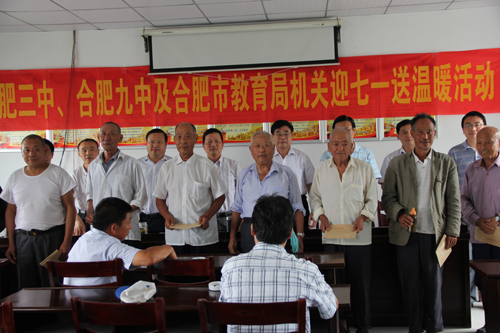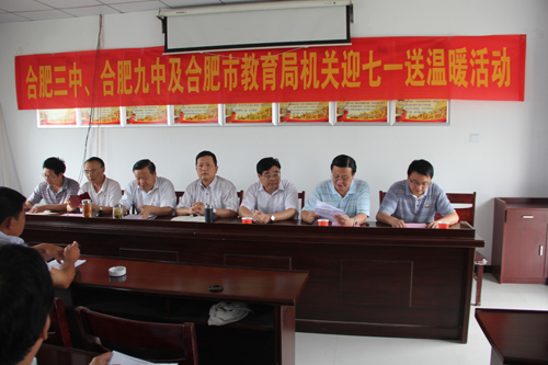 5月27日上午,我校黨委書記、校長陳明華同市教育局機(jī)關(guān)黨委和合肥三中黨組織主要負(fù)責(zé)同志赴肥東縣馬湖鄉(xiāng)小陶社區(qū)開展“四聯(lián)四定”暨“迎七一送溫暖”活動。