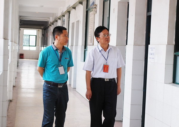 葛局長一到學校徑直來到考務組,仔細了解了考點各項工作,聽取了考點副主考徐懷生的工作匯報,并對工作人員表示慰問。在陳國武校長陪同下,葛局長察看了考點環(huán)境,并深入考場實地查看了監(jiān)考及考試情況。對淮南十三中考點對學業(yè)水平考試的高度重視,充分準備,規(guī)范操作給予了充分的肯定。