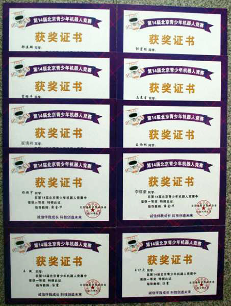 2014年1月23日,由湯震老師帶領(lǐng)的ASC機(jī)器人代表隊(duì),由薛金華老師帶領(lǐng)的FLL機(jī)器人高中、初中兩個(gè)代表隊(duì)參加了在北京市第八十中學(xué)舉辦的第14屆北京青少年機(jī)器人競賽,在學(xué)校領(lǐng)導(dǎo)的大力支持和幫助下,在師生兩個(gè)多月的共同努力下,其中FLL機(jī)器人高中代表隊(duì)、ASC機(jī)器人代表隊(duì)獲得北京市一等獎(jiǎng),F(xiàn)LL機(jī)器人初中代表隊(duì)獲得北京市二等獎(jiǎng)。