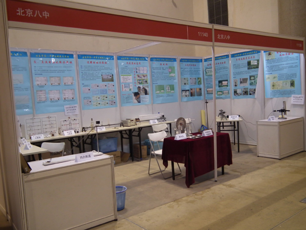 我校應(yīng)主辦單位邀請(qǐng)參加了這次展示活動(dòng),設(shè)立了北京八中展示區(qū)并做專(zhuān)題發(fā)言。自制教具是我校的光榮傳統(tǒng),也是我校在實(shí)驗(yàn)教學(xué)和科技教育方面的一大特色。近十幾年來(lái)八中實(shí)驗(yàn)室繼承這一傳統(tǒng),開(kāi)發(fā)、制作了大量適應(yīng)當(dāng)代物理教育改革要求的新方案和新教具,以其安全、有效、方便、有趣、節(jié)能等特點(diǎn),受到了國(guó)內(nèi)外物理教育專(zhuān)家、科技教育專(zhuān)家和物理教師的好評(píng)。到目前為止,已經(jīng)有幾十件(套)自制教具(或?qū)嶒?yàn)方案)獲得全國(guó)及北京市獎(jiǎng)項(xiàng)六十余項(xiàng),其中全國(guó)一等獎(jiǎng)12項(xiàng)。