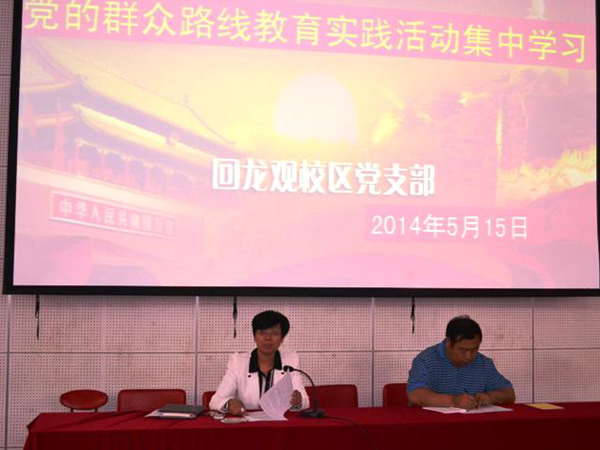 根據(jù)昌平二中黨總支黨的群眾路線教育實踐活動安排,5月15日下午,昌平二中回龍觀校區(qū)黨支部圍繞“黨的群眾路線教育實踐活動”進行了集中學(xué)習(xí)。學(xué)習(xí)活動由回龍觀校區(qū)黨支部組織委員趙文進主任主持,回龍觀校區(qū)黨支部書記金秀榮對學(xué)習(xí)活動進行了部署,來自各組處的30多名黨員參加了此次學(xué)習(xí)。
