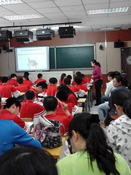 課后,教研員和全區(qū)初二英語教師進行了熱烈的討論,一致認為課堂主線清晰,實施連貫、自然,教師引導(dǎo)得當,許多亮點值得借鑒。區(qū)教研員景鵬老師認為,此課教學設(shè)計具有創(chuàng)新感,又很扎實,課堂體現(xiàn)了對學生的關(guān)注和對學生思維能力的培養(yǎng),提高了課堂有效性。