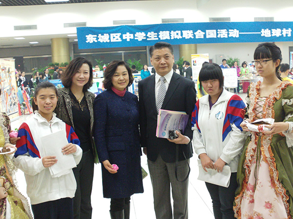 宏志中學(xué)鄭思陽同學(xué)作為聯(lián)合國大會第三委員會主席圓滿的組織了“消除對女性的歧視”會議,三個小時的激烈討論和辯論得到了參與學(xué)校學(xué)生們的好評。宏志中學(xué)學(xué)生們以雄辯的口才、團結(jié)的合作以及融洽的交際,獲得“最佳組織獎”“十佳地球村獎”“最佳團隊獎”三項集體獎,教委領(lǐng)導(dǎo)王夢娜對于我校學(xué)生自己拼裝的法國埃菲爾鐵塔和凱旋門等立體圖形大加贊揚并與學(xué)生合影留念。