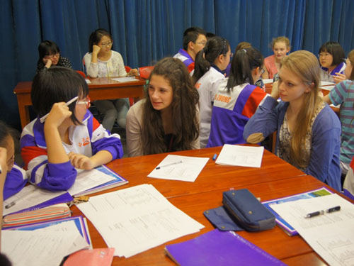 英國牛津中學(xué)的學(xué)生還與九中學(xué)生一起上課,體驗中國高中的教學(xué)方式。在張寧老師的英語課上,中英雙方學(xué)生共同學(xué)習(xí)第10單元“Money”,討論了如何進(jìn)行討價還價,比較了中英兩國不同的金錢觀念;王世宏老師的美術(shù)攝影課以上午的合唱交流演出為素材,教授了新聞攝影,讓學(xué)生認(rèn)識到了新聞攝影與一般攝影的不同,體驗了一回記者的工作。課上,雙方學(xué)生共同交流,圓滿完成學(xué)習(xí)任務(wù)。