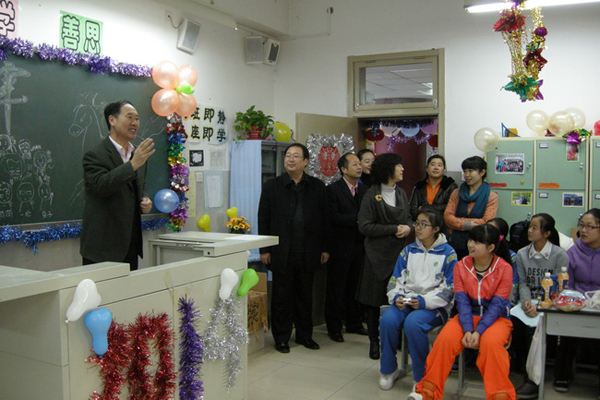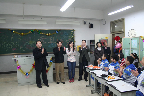 趙欣校長、李獻(xiàn)國書記、蔡向文副校長帶領(lǐng)永安里校區(qū)干部走進(jìn)教室,為學(xué)生送去新年的祝福和禮物,祝愿同學(xué)們在新的一年健康成長,學(xué)業(yè)有成!并提醒同學(xué)們在這快樂的日子里一定不要忘記向一年來辛勤耕耘、無私奉獻(xiàn)的老師們表示感謝,贏得了全場師生持續(xù)不絕的掌聲。