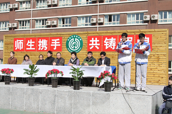 2月6日,日壇中學(xué)召開了主題為“師生攜手,共鑄輝煌”2014屆高考百日誓師大會。此次誓師大會趙欣校長、學(xué)校相關(guān)領(lǐng)導(dǎo)、初、高三年級全體師生參加。