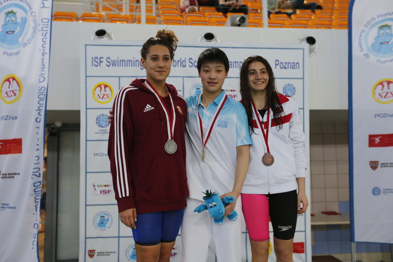 4月16至21日,我校游泳隊(duì)12名隊(duì)員在波蘭波茨南市舉行的2015年世界中學(xué)生運(yùn)動(dòng)會(huì)上,共獲得游泳比賽單項(xiàng)金牌3枚,女子團(tuán)體總分第二名的好成績(jī)。這是我校游泳隊(duì)代表國(guó)家第6次參加世界級(jí)中學(xué)生比賽。前幾次比賽,我校隊(duì)員均表現(xiàn)優(yōu)異,成績(jī)突出!