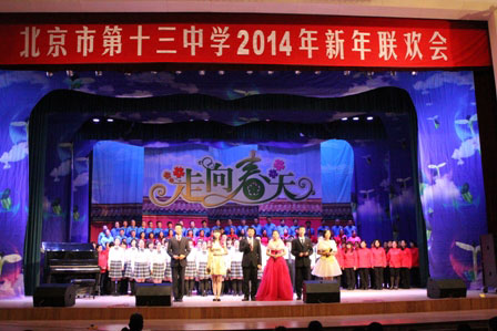 伴隨著金蛇狂舞的民樂齊奏,北京市第十三中學2014年“走向春天”新年聯(lián)歡會拉開了序幕。在春的期冀中馬景林校長激情致辭,他對同學們的期望是:完善自我,幫助他人;丟掉牢騷,從我做起,開始實踐;堅持真理、獨立思考、勿丟良知。愿所有十三中人帶著希望,走向春天!