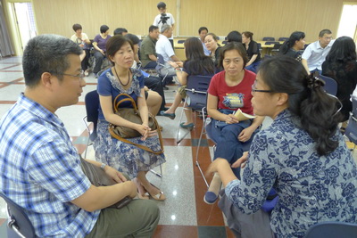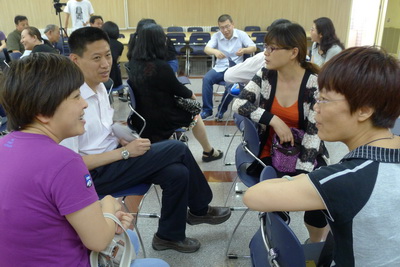 侯志瑾教授帶領(lǐng)家長做了“找零錢”的熱身活動,相互認(rèn)識,并通過分組交流的方式了解家長們對此次沙龍的期待,以“孩子三十歲”為題一起思考對孩子未來的期待。侯教授根據(jù)家長的困惑做經(jīng)驗(yàn)分享,引導(dǎo)家長們分享與孩子溝通中的典型例子。李璇老師帶領(lǐng)大家學(xué)習(xí)溝通的角色定位,與家長們一起反思分析親子溝通中常常出現(xiàn)的困擾及家長的在溝通中的角色變化。結(jié)合研究錄音,比較角色定位的差異和溝通方式,介紹如何與高一學(xué)生以成人的角色溝通并促進(jìn)學(xué)生思考自己的生涯規(guī)劃,在與孩子溝通中提供有效的生涯溝通,F(xiàn)場家長們參與活動積極活躍,討論熱烈,很多家長在筆記本上記錄要點(diǎn)或用手機(jī)拍下ppt重點(diǎn)內(nèi)容,結(jié)束時(shí)一些家長留下來與侯教授、李璇老師、張勤校長、李彥棚老師繼續(xù)溝通。