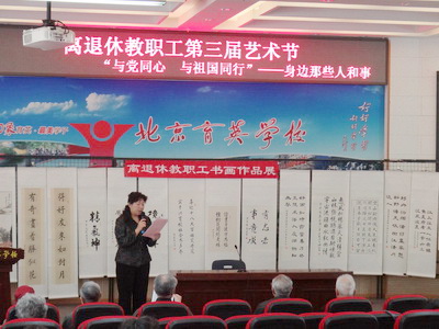 5月5日上午在學(xué)校思明樓階梯教室進(jìn)行了藝術(shù)節(jié)臺(tái)上展示部分,10位老師以“與黨同心與祖國(guó)同行”為主題,與大家分享了他們身邊的人和事,樊明德老校長(zhǎng)根據(jù)自己的經(jīng)歷介紹了《開(kāi)國(guó)元?jiǎng)着c育英》;為減輕兒女負(fù)擔(dān)教育好第三代的劉焱、郭蘭芳老師;介紹各個(gè)活動(dòng)小組的快樂(lè)生活的賈桂蘭、隋東、高慧蘭、李敏蘭、孫麗華、果書(shū)香、張桂珍等老師,最受歡迎的是張琦老師的演講《健康快樂(lè)每一天》,他用詼諧的語(yǔ)言,贏得了陣陣掌聲,姚艱老師的《心中的愛(ài)》感動(dòng)著在場(chǎng)的每一位老師。