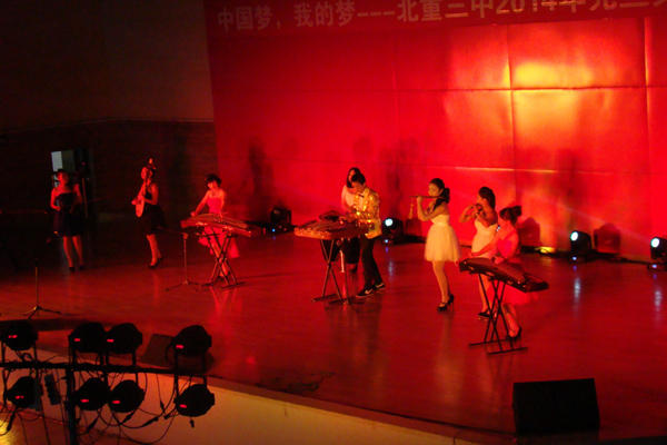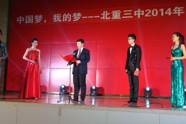 三中武術(shù)隊(duì)《武動(dòng)青春》的精彩表演武出了文藝匯演的第一篇章,同學(xué)們各顯其能,紛紛登臺(tái)獻(xiàn)藝。胡家杰《B-box》出眾的口技絕活剛一亮相就贏來此起彼伏的尖叫與掌聲;白禹順這一“身出名班”的帥小伙以優(yōu)美的小提琴聲驚呆了四座;在青山區(qū)語言類節(jié)目專場比賽中位于中學(xué)組16個(gè)節(jié)目中第三名的雙簧小品《青春樂章》被同學(xué)們授予“最受歡迎獎(jiǎng)”;同樣在青山區(qū)語言類節(jié)目專場比賽中中學(xué)組課本劇排名第三的《孔雀東南飛》“劇組”也親情展示;藝體中心帶來的大型舞蹈《扇舞》和《向天歌》都給人以美好的視覺享受;聲樂教師張國瑞老師和李奕蒙老師的歌聲更是極具感染力,讓人振奮欣喜,回味無窮……整場演出在《同圓中國夢》的歌聲中圓滿結(jié)束。
