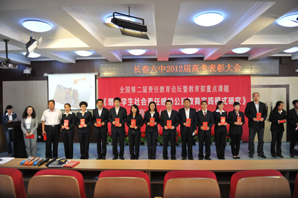 我們是長春六中2012屆高三畢業(yè)班的全體教師。今天,是一個(gè)令人激動(dòng)不已的日子;今天,是一個(gè)讓人豪情滿懷的日子;今天,更是一個(gè)讓人心懷感恩的日子!因?yàn)橛心,我們有幸站在這里感受這份沉甸甸的高考獎(jiǎng)金。雖然未曾謀面,但是我們分明看到了一位慈愛、有社會(huì)責(zé)任感、心系祖國教育的優(yōu)秀企業(yè)家!因?yàn)槟牟⿶壑,給我們留下了溫暖的印記,中華民族的優(yōu)良傳統(tǒng)在您的愛心行動(dòng)中得到弘揚(yáng)。在這里,我們?cè)呷w教師向您表示深深的敬意和最真摯的感謝!