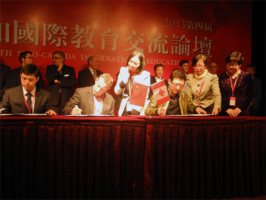 會議的最后一個議程是一些中國著名中小學(xué)與加拿大部分教育局簽訂了合作協(xié)議,黃興力校長與加拿大BC省歌摩士谷教育局、溫哥華公立教育聯(lián)盟簽訂了三方合作協(xié)議,擬將在國際部開設(shè)中加國際班。招收初2014級初中畢業(yè)生,在高中進(jìn)行一年的國內(nèi)學(xué)習(xí),在高二、高三階段就讀加拿大BC省歌摩士谷教育局所屬的公立學(xué)校,住宿于當(dāng)?shù)貎?yōu)秀的家庭中,在加拿大參加高考,報考美國、加拿大、澳大利亞等國大學(xué)。這將對我校教育國際化起到積極的推進(jìn)作用,使學(xué)校的教育國際化更上一個臺階。