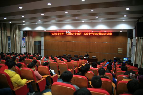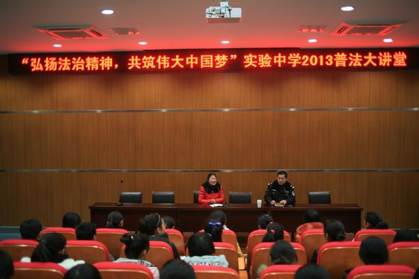 在2013年“12.4“全國(guó)法制教育日系列活動(dòng)中,12月13日下午學(xué)校邀請(qǐng)理論水平較高、執(zhí)法經(jīng)驗(yàn)豐富的兩名公安干警以在學(xué)生身邊的行為,引用法律條文,列舉典型案例給學(xué)生上了一堂生動(dòng)的法制教育課。