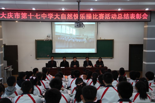 12月4日,大慶市第十七中學“大自然快樂操”頒獎典禮在階梯教室隆重舉行。副校長曹金波、校長助理段躍平、團委書記王鑫、高一年級主任苗世昌等校領導蒞臨會場,與高一年級的師生們一同分享了比賽中的感動與收獲。尹高強主任主持了本次頒獎典禮。