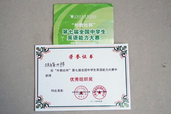我校外語組獲得“外教社杯”第七屆全國中學(xué)生英語能力大賽“優(yōu)秀組織獎(jiǎng)”榮譽(yù),受到組委會(huì)表彰,在此學(xué)校對(duì)外語組的工作也予以表彰。