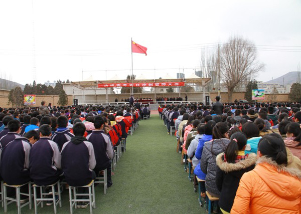 盛校長代表學(xué)校向在高三畢業(yè)班辛勤耕耘、無私奉獻(xiàn)的老師們表示衷心的感謝和誠摯的敬意。向勤奮學(xué)習(xí)、頑強(qiáng)拼搏、屢創(chuàng)佳績的同學(xué)們致以親切的問候。盛校長鼓勵高三的同學(xué)們要擁有夢想,樹立信心,科學(xué)備考,調(diào)整心態(tài)。勇于面對高考嚴(yán)峻的考驗,并要始終不渝的堅持努力,創(chuàng)造六月的輝煌!她勉勵全體同學(xué)要以積極的態(tài)度解決問題,以勇敢的態(tài)度戰(zhàn)勝畏懼,以激情的態(tài)度快樂學(xué)習(xí),以平靜的態(tài)度挑戰(zhàn)憂慮,以自信的態(tài)度改變現(xiàn)狀,以期待的態(tài)度憧憬未來,她衷心祝愿全體同學(xué)在2014年高考中旗開得勝,高奏凱歌,金榜題名,馬到成功。