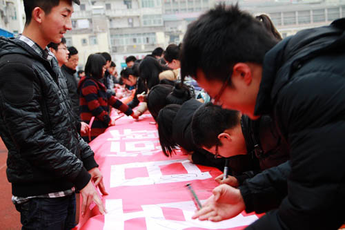 高三(6)班李方麗、高三(10)班阮曾成、高三(15)班余小芳代表同學(xué)們發(fā)言,表示一定牢記“認(rèn)真”二字,拋開(kāi)雜念,耐住寂寞,奮發(fā)努力,分秒必爭(zhēng),以最好的狀態(tài)迎接2014年高考。