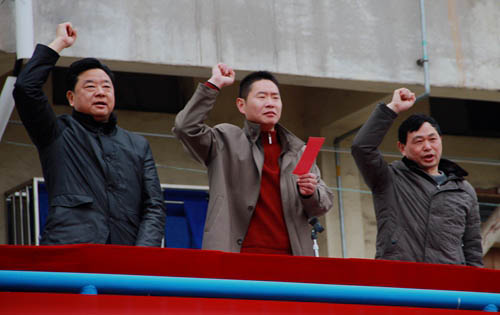 2月26日下午,我校2014屆高考倒計(jì)時(shí)一百天誓師大會(huì)在校田徑運(yùn)動(dòng)場(chǎng)隆重舉行。校黨委書(shū)記、校長(zhǎng)徐家森、黨委副書(shū)記嚴(yán)尚春出席大會(huì),高三年級(jí)主任及全體師生參加了大會(huì)。