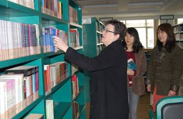 28日上午,年檢官員首先與外教交談,隨后參觀了我校民眾樓理化生實驗室和校圖書館。