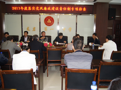 市委教育工委專職副書記馬希首先介紹了檢查組成員和檢查的內(nèi)容、方法。他指出,此次檢查是根據(jù)省委教育工委、省教育廳和市委教育工委、市教育局有關(guān)文件精神,對部分市屬學(xué)校2013年度落實(shí)黨風(fēng)廉政建設(shè)責(zé)任制情況開展的抽查活動,重點(diǎn)檢查領(lǐng)導(dǎo)班子履行黨風(fēng)廉政建設(shè)主體責(zé)任和紀(jì)檢監(jiān)察部門履行監(jiān)督責(zé)任情況、落實(shí)中央八項(xiàng)規(guī)定精神和市委貫徹落實(shí)辦法情況及2012年度推進(jìn)懲防體系建設(shè)和落實(shí)黨風(fēng)廉政建設(shè)責(zé)任制工作檢查反饋意見的整改情況。