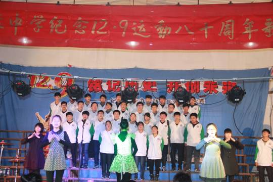 2015年十二月8、9日下午,我校高二、高一學(xué)生分別在學(xué)校餐廳舉行了紀(jì)念一二﹒九運(yùn)動(dòng)80周年歌詠比賽,此次比賽是以班級(jí)為單位,任選兩首愛國歌曲參加合唱比賽,同學(xué)們以別出心裁的創(chuàng)意和鏗鏘豪邁的實(shí)力贏得了一次次熱烈的掌聲。