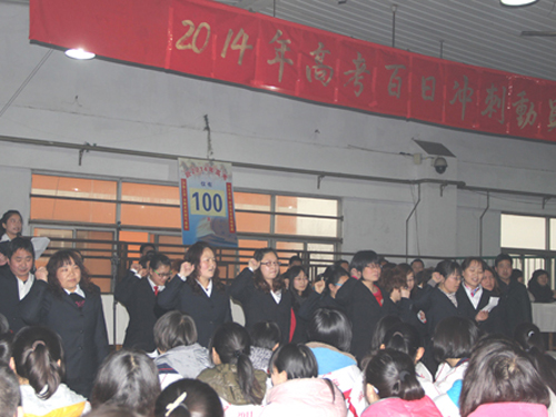 ●2月26日,我校全體高三年級學(xué)生和老師舉行了2014年高考百日沖刺誓師大會(huì)。
