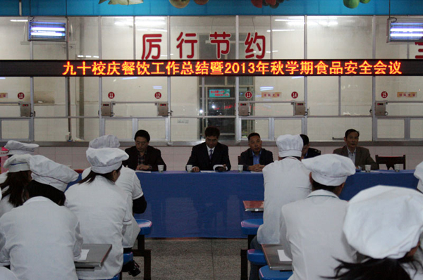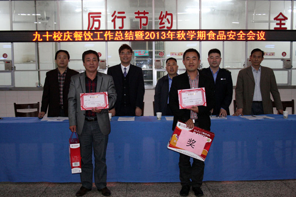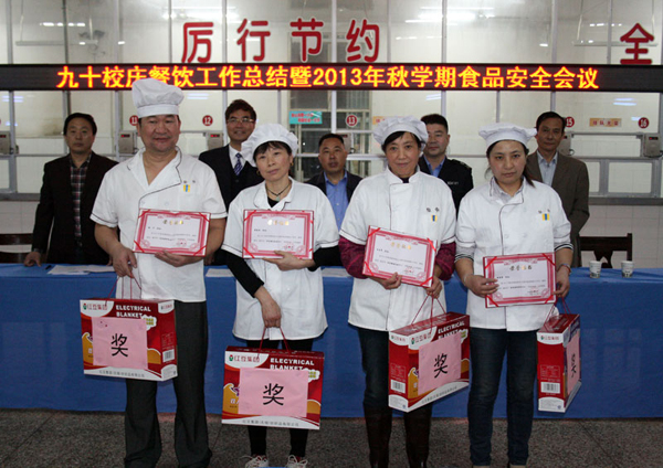 10月23日晚7點,總務(wù)處在勤業(yè)樓一樓食堂隆重召開了校慶期間餐飲服務(wù)總結(jié)表彰暨秋學(xué)期食品安全衛(wèi)生工作會議。會議由范順忠主任主持,楊明校長和吳柏勝主任分別作了重要的講話,縣衛(wèi)生監(jiān)督所張動方主任就食品衛(wèi)生安全給食堂全體從業(yè)人員上了生動的一課。會議最后對各食堂和事務(wù)處人員在本次校慶活動中表現(xiàn)突出的人員進(jìn)行了表彰,并為獲獎人員頒發(fā)了榮譽證書和獎品。