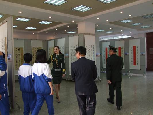 佛山一中校長譚根林和李洪海院長一同參觀展覽