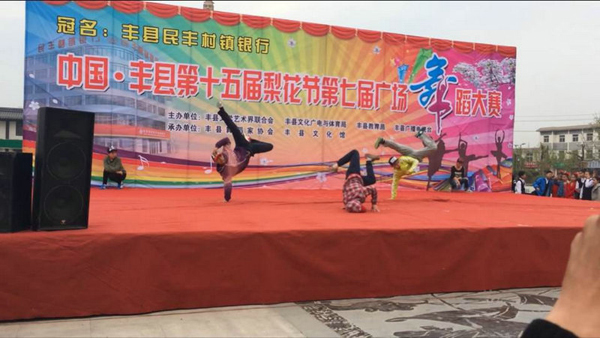 4月7日,由豐縣文聯(lián)、文廣體局、教育局、電視臺聯(lián)合主辦,由舞蹈協(xié)會、文化館承辦的中國?豐縣第十五屆梨花節(jié)“民豐村鎮(zhèn)銀行杯”暨豐縣第七屆廣場舞大賽在劉邦廣場隆重舉行。整場大賽歷時4個小時,經(jīng)過激烈的角逐,我校代表隊李超偉等五位同學(xué)呈現(xiàn)的街舞博得觀眾和評委的陣陣掌聲,最后獲得了銅獎。