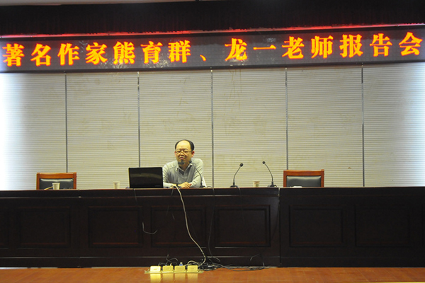 4月11日晚,著名作家熊育群,龍一老師來(lái)到豐縣中學(xué),為學(xué)生作報(bào)告。