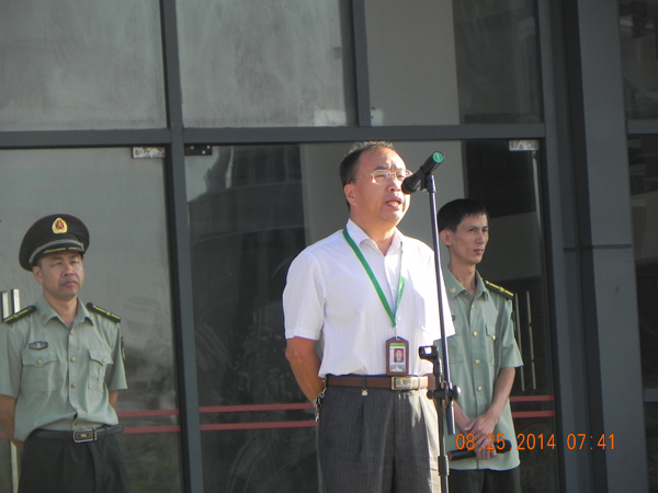 我校陳學(xué)建副校長(zhǎng)也在大會(huì)上作了鼓勵(lì)講話,他希望同學(xué)們磨煉意志,刻苦鍛煉,提高自我,以嶄新的面貌投入軍訓(xùn)。
