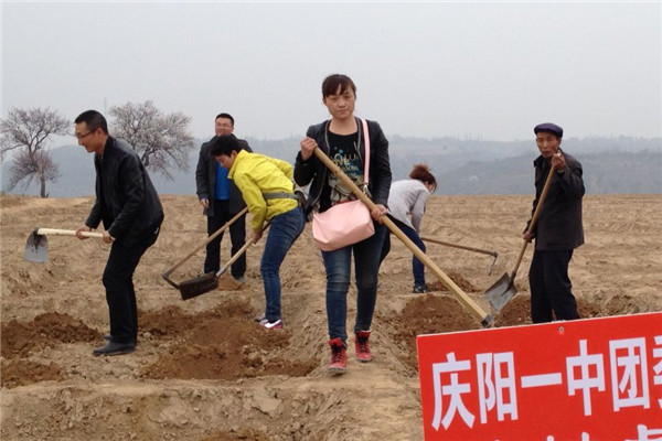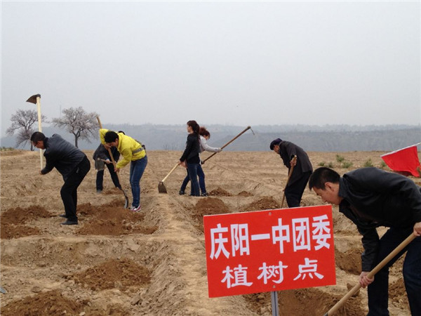 為了積極響應團市委提出的充分發(fā)揮共青團組織的優(yōu)勢,帶領廣大團員青年積極投身到“保護母親河”行動中來。3月31日,校團委組織部分青年教師在西峰區(qū)顯勝鄉(xiāng)開展了“保護母親河 美麗中國夢”青少年義務植樹活動,植樹期間,團市委、區(qū)團委、市直各部門團委共栽植50厘米高油松苗4萬余株,植綠80余畝。