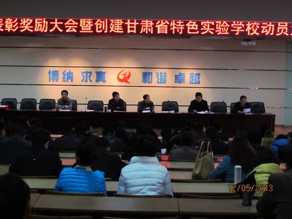 12月5日下午4:20,學(xué)校隆重召開了高考表彰獎勵暨創(chuàng)建甘肅省特色實驗學(xué)校動員大會。校長竇興文做了重要講話,會議由黨總支書記石峰主持。
