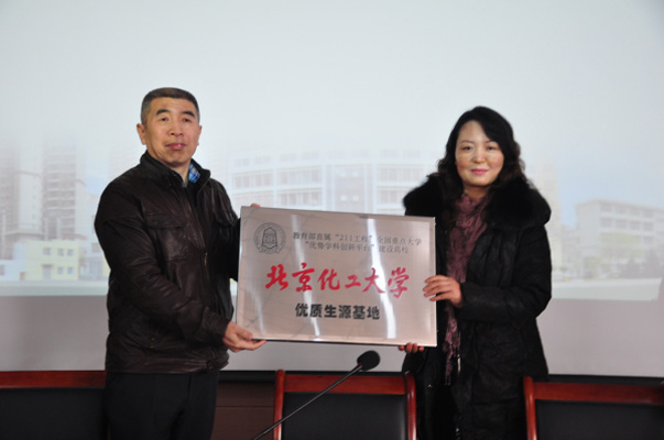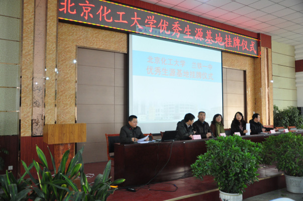 12月13日,北京化工大學(xué)優(yōu)秀生源基地掛牌儀式暨人才輸送協(xié)議簽署在我校三樓報(bào)告廳舉行。北京化工大學(xué)副校長李顯揚(yáng)、北京化工大學(xué)招生辦主任趙靜、北京化工大學(xué)文法學(xué)院黨總支書記張亮、北京化工大學(xué)甘肅招生組長王克儉、北京化工大學(xué)甘肅招生組副組長宋保仁出席儀式。我校副校長張潤娥、楊玉良,教研室主任武慶文,教務(wù)處副主任蔡梅琳,校辦室副主任李學(xué)睿及相關(guān)老師、高二年級理科實(shí)驗(yàn)班學(xué)生參加儀式,儀式由楊玉良副校長主持。