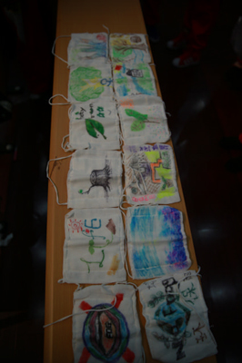 活動過程中,同學們積極發(fā)揮創(chuàng)意,制作了風格不一、各具特色的口罩。有的口罩上畫了綠色、黃色各一半的圖案,警醒著我們需要在發(fā)展中需求綠色之路,不然就會將地球變成一個充滿黃色霧霾的星球;有的口罩上畫了同學們精心設(shè)計的徽章,每一個部分都與環(huán)境保護有密切的聯(lián)系;有的口罩畫上了迷宮,象征人類發(fā)展的道路需要正確的方向和指引,否則就會走到環(huán)境保護的死胡同。
