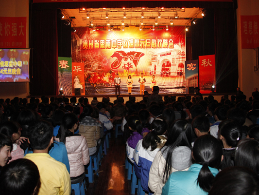 本次晚會以春華秋實(shí)為主題。演出前,黨委副書記、校長張翔剛發(fā)表了熱情洋溢的新年致辭。他回顧總結(jié)了2013年學(xué)校各項(xiàng)工作取得成績,同時(shí)也提出了在新的一年里全校師生團(tuán)結(jié)一心,同舟共濟(jì),與時(shí)俱進(jìn),共同譜寫思南中學(xué)新篇章的美好愿望。