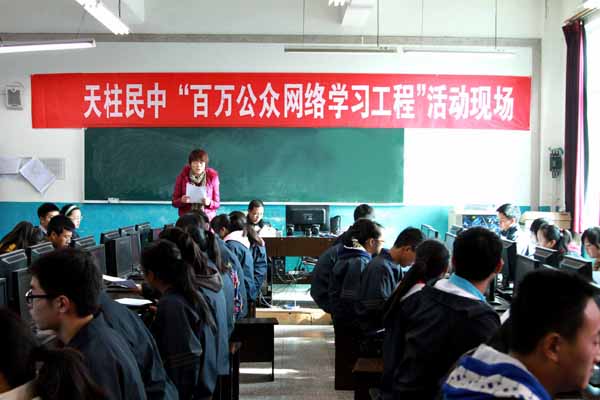 根據(jù)天全科組辦通【2013】1號(hào)《關(guān)于印發(fā)<2013年天柱縣“百萬(wàn)公眾網(wǎng)絡(luò)學(xué)習(xí)工程”活動(dòng)實(shí)施方案>的通知》的要求,為有效提升全校師生的理論素養(yǎng),加強(qiáng)干部職工特別是領(lǐng)導(dǎo)干部的發(fā)展能力,進(jìn)一步凝聚人心、智慧和力量,天柱民族中學(xué)積極響應(yīng)“天柱縣百萬(wàn)公眾網(wǎng)絡(luò)學(xué)習(xí)工程”活動(dòng)號(hào)召,認(rèn)真抓落實(shí)。