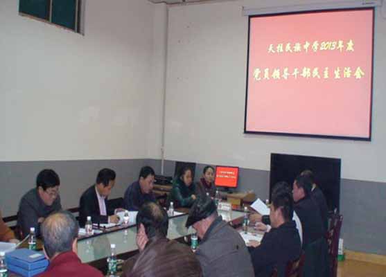 根據(jù)縣紀(jì)委、縣委組織部文件(天組通2013〔127〕號)的要求和部署,緊緊圍繞保持黨的先進性和純潔性,按照“照鏡子、正衣冠、洗洗澡、治治病”的總體要求,以“為民務(wù)實清廉”為主題,以“反對‘四風(fēng)’、服務(wù)群眾、踐行‘三實三同’”為重點,以落實“四先一籌備”工作為抓手,堅持嚴(yán)肅認(rèn)真、實事求是、民主團結(jié)的原則,經(jīng)學(xué)校黨委的認(rèn)真籌備安排,學(xué)校領(lǐng)導(dǎo)班子于2013年12月5日下午召開了的一次高質(zhì)量的領(lǐng)導(dǎo)干部民主生活會。參會人員有校級班子成員、中層正職行政干部、離退休教師代表和縣人大、政協(xié)委員代表共17人,縣級黨員領(lǐng)導(dǎo)干部縣人大主任姚學(xué)銀同志、縣紀(jì)委副書記龍云輝同志、縣委組織部副部長、人事局局長戈成星同志到會指導(dǎo)。