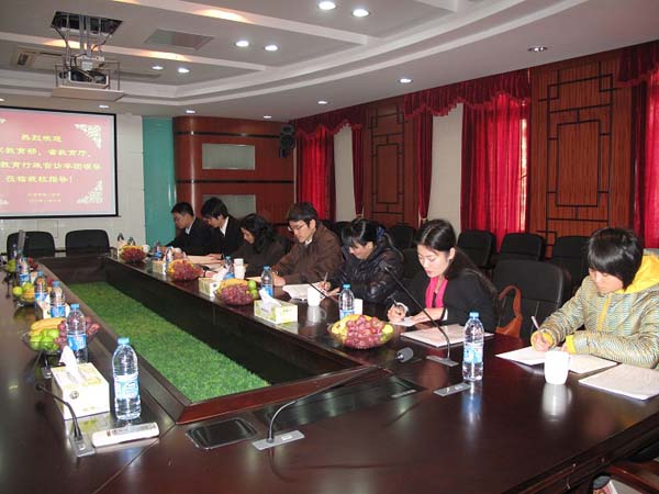 座談會(huì)上,肖校、丁主任就有關(guān)學(xué)校的辦學(xué)情況、英語(yǔ)科組建設(shè)情況、高、初中英語(yǔ)學(xué)科建設(shè)情況及教學(xué)大綱內(nèi)容等與對(duì)方進(jìn)行了交流。隨后,參訪團(tuán)一行進(jìn)行了隨堂聽(tīng)課,聽(tīng)取了我校高一(5)班黃理香老師的英語(yǔ)課。參訪團(tuán)一致表示,鐵一的學(xué)生學(xué)習(xí)熱情高、積極性強(qiáng)、陽(yáng)光大氣,學(xué)校的教材大綱編撰合理,教師教學(xué)設(shè)計(jì)把握嚴(yán)謹(jǐn)、重難點(diǎn)突出,教學(xué)水平高。參訪團(tuán)同時(shí)對(duì)于學(xué)校管理、教學(xué)給予了很高的評(píng)價(jià)。