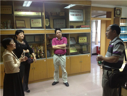 領(lǐng)導(dǎo)、專(zhuān)家在學(xué)校綜合檔案室考察與交流