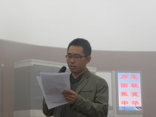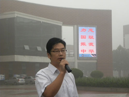 活動首先由趙春雷老師作了“勿忘國恥,銘記‘九?一八’”的主題演講,他的演講飽含深情,慷慨激昂,呼吁同學們不忘國恥,繼承遺志,保衛(wèi)釣島,抵制日貨,從我做起,奮發(fā)圖強,贏得了在場師生的共鳴和陣陣掌聲。演講在全體師生雄壯的國歌聲中結束。
