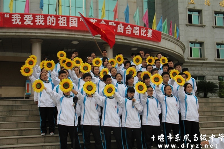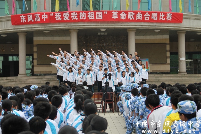 “我們是五月的花!1200余名師生共唱共青團(tuán)之歌,拉開了歌詠比賽的序幕。《游擊隊之歌》、《我愛你,中國》、《長征》、《我們都有一個家》等經(jīng)典老歌被各班傳唱,音樂聲時而舒緩,時而激昂的,各班學(xué)生盡展才藝,為歌詠賽增添亮色,有的班集體手持象征蒸蒸日上的向日葵,有的班擁護(hù)國旗上場,有的學(xué)生現(xiàn)場伴舞,有的學(xué)生用小提琴伴奏,不僅展示了東高學(xué)子的朝氣蓬勃的風(fēng)采,也讓人不禁被他們的愛國激情感染!皩τ诟咭恍律鷣碚f,應(yīng)該盡早樹立遠(yuǎn)大理想,規(guī)劃好自己的高中生活。如何規(guī)劃?從現(xiàn)在做起,從身邊做起,從愛國主義教育做起!睎|風(fēng)高中政教處主任方志啟介紹,“這次歌詠賽既是一次比賽,也是一次集體德育教育。做為一名合格的高中生,必須了解我們的民族歷史,必須懂得什么叫‘為中華之崛起而讀書’。所以借助這樣的歌詠賽,讓同學(xué)們?nèi)ふ覛v史,激發(fā)愛國熱情!