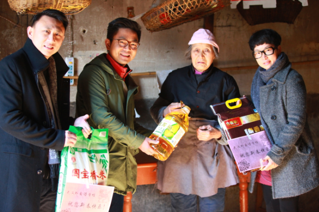 按照市教育局“三萬活動(dòng)”辦公室的部署,學(xué)校領(lǐng)導(dǎo)對(duì)新一輪“三萬”活動(dòng)的開展十分重視,專門召開專題會(huì)議,部署對(duì)口幫扶工作,確定工作組派駐人員。2014年1月23日上午,學(xué)校派出高中部周全主任、初中部黃雨聲主任和小學(xué)部熊菲主任,代表學(xué)校赴江夏區(qū)山坡鄉(xiāng)紅專村開展2014年新一輪“三萬活動(dòng)”對(duì)口交流前期準(zhǔn)備工作。三人在紅轉(zhuǎn)村張書記的帶領(lǐng)下,入戶走訪看望了該村的貧困農(nóng)戶,并送去了米油等慰問品。隨后與山坡鄉(xiāng)譚鄉(xiāng)長(zhǎng)座談,商談下一步具體的對(duì)口幫扶措施。譚鄉(xiāng)長(zhǎng)和張書記代表鄉(xiāng)政府和紅專村對(duì)我校積極踐行省委省政府“三萬活動(dòng)”的精神表示感謝,也希望能在我校的幫助下使紅專村的農(nóng)村基礎(chǔ)、農(nóng)村民生和三農(nóng)發(fā)展得到進(jìn)一步的加強(qiáng)。
