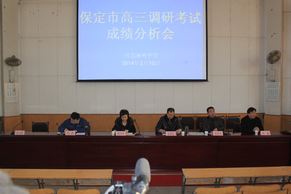 保定市高三調(diào)研考試成績分析會(huì)于2014年2月10日上午在我校報(bào)告廳隆重召開。保定市教育局張國忠局長、涿州市副市長趙玉芬、保定教育局孫英杰處長、保定教科所馮洪所長、涿州市教育局何楊局長在大會(huì)主席臺(tái)就坐。會(huì)議由孫英杰處長主持。來自保定市所屬市、縣的教育局領(lǐng)導(dǎo)和各高中校長、校領(lǐng)導(dǎo)參加了大會(huì)。
