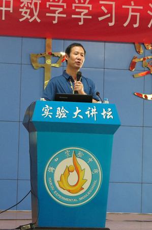 6月25日下午,“實驗大講壇”邀請到了北京四中苗金利老師為全體師生作了一場題為“如何復(fù)習高考數(shù)學”的報告。苗老師結(jié)合自身的教學和班主任經(jīng)歷,分析歷年高考數(shù)學的特點,深入淺出,報告精彩、熱烈,受到了老師和同學們的一致好評。大家紛紛表示受益匪淺。